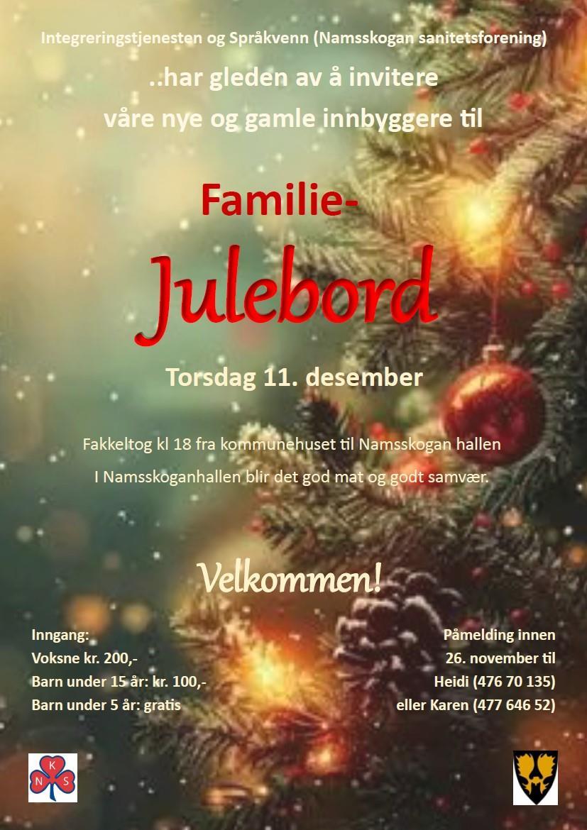 Familiejulebord ~ torsdag 11. DesemberLytt til tekstenStopp avspillingIntegreringstjenesten og Språkvenn inviterer våre nye og gamle innbyggere til familiejulebord. Sist endret 22.10.2025 13.52
